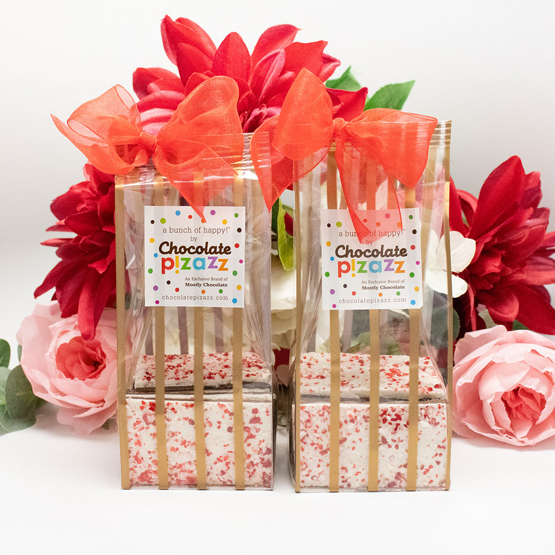 Enjoy the exquisite blend of smoothly sweet chocolate and sharply cool candy with our beloved Peppermint Bark.